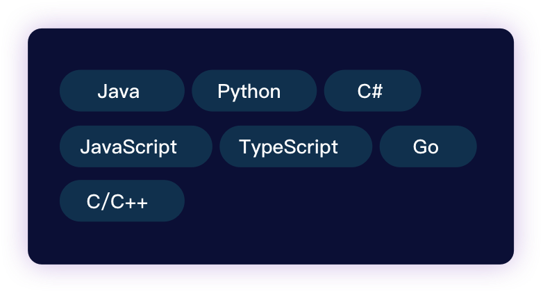 - Support Java, Python, C#, C/C++, JavaScript, TypeScript, Go and other programming languages (cloud intelligent programming service currently only supports Java language)
