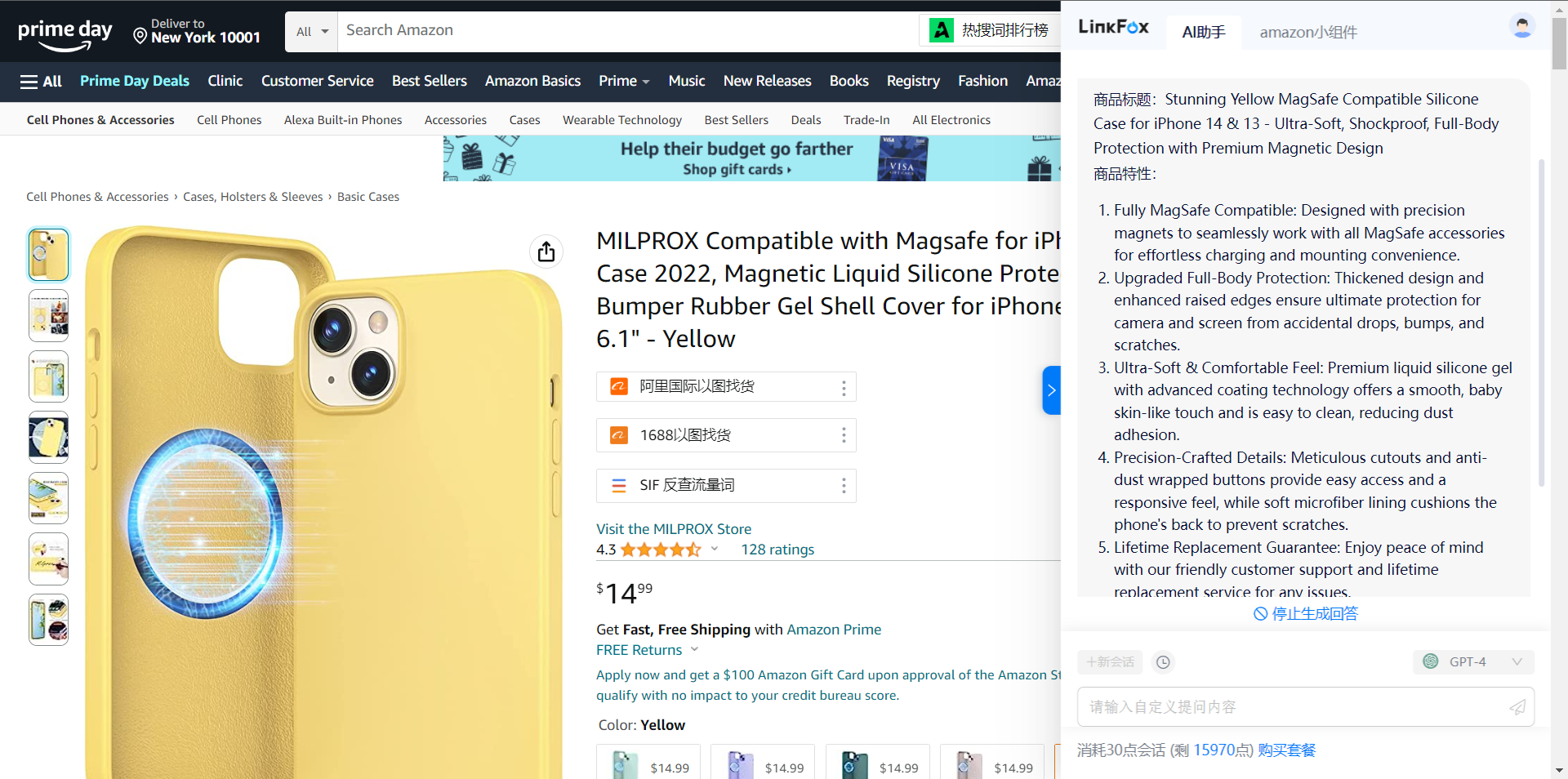 LinkFox 是一款专为跨境卖家打造的运营助手,集成了 GPT-4 模型,提供了一站式的运营解决方案,它包含了 Amazon 小组件和 AI 助手两大功能。
