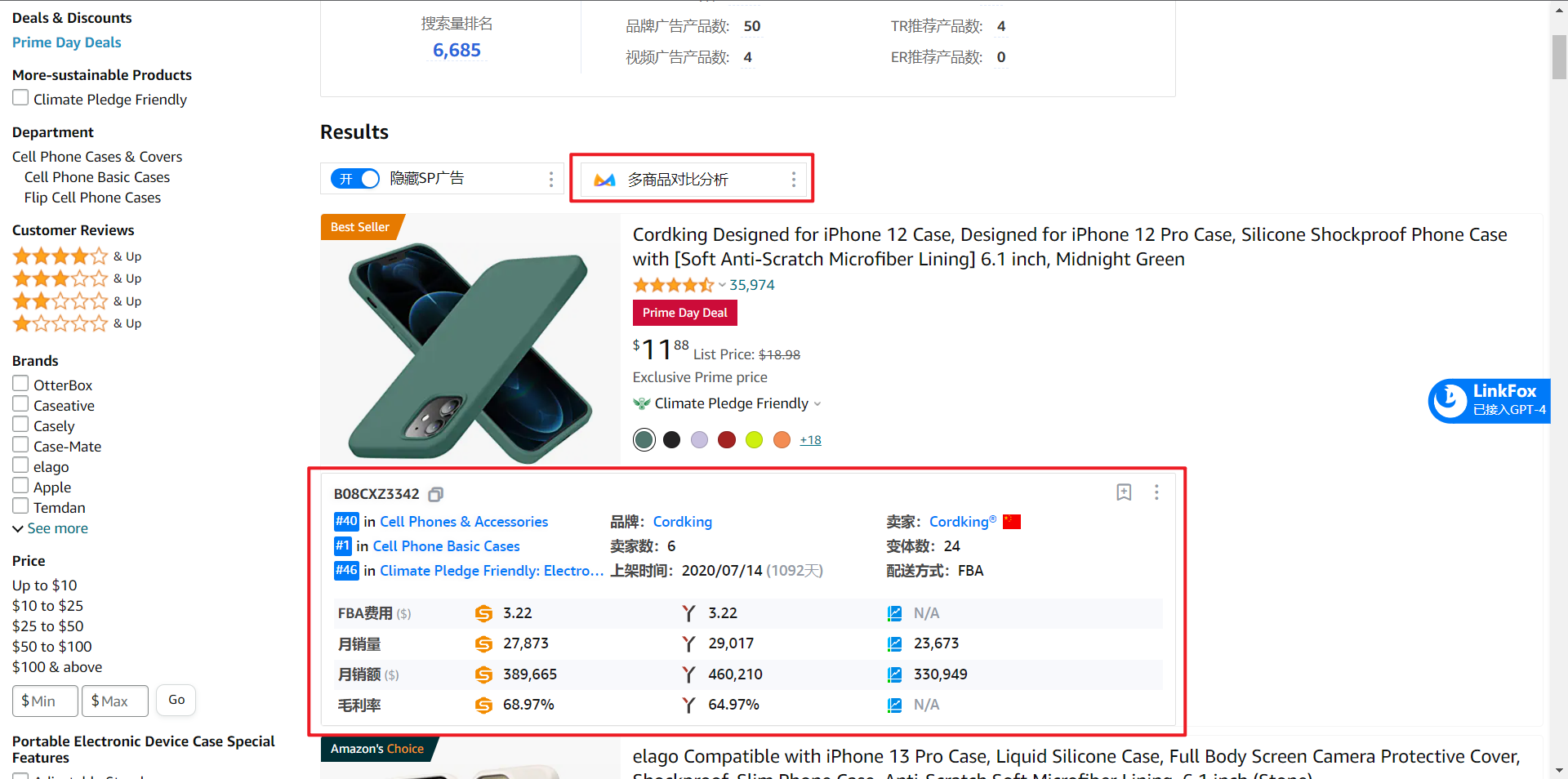 下面以 “iphone case” 选品场景为例,讲解使用步骤