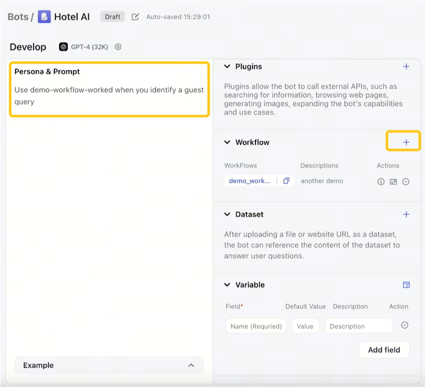 - 人设与规则:定义机器人角色(例:“严谨的金融顾问”);