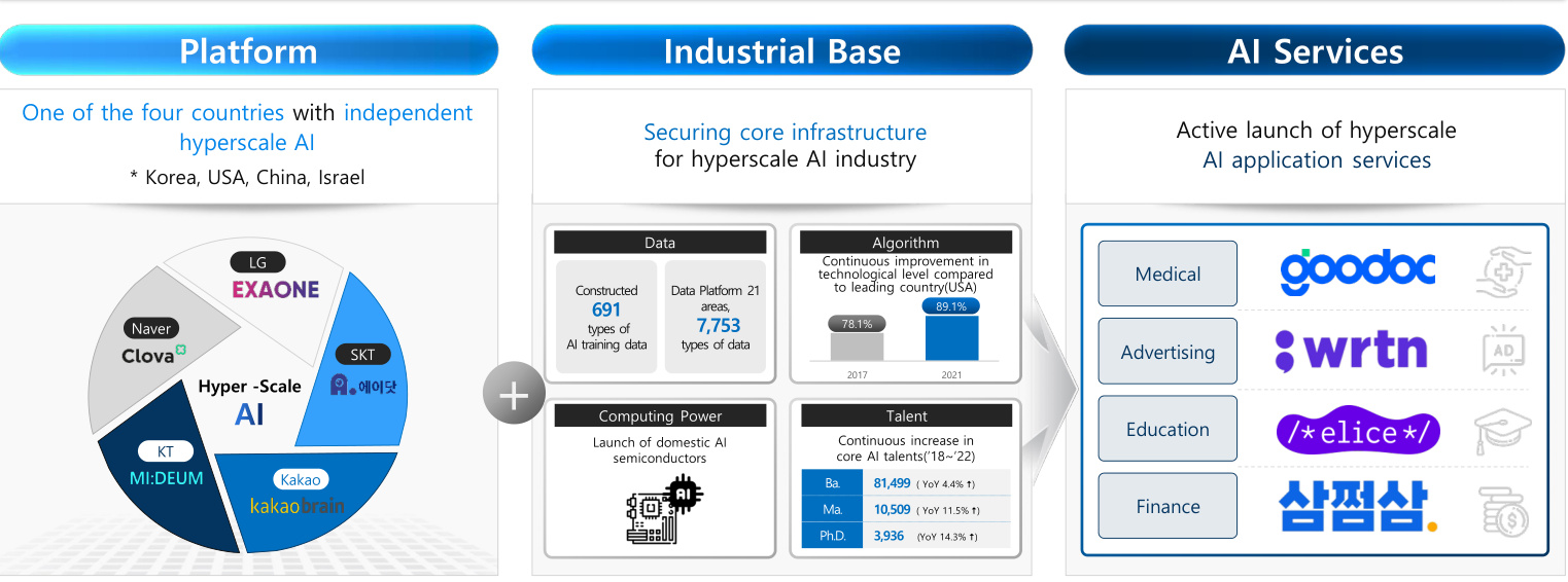 韩国政府将AI列为国家战略,计划2030年创造455万亿韩元经济效益,SKT作为”AI金字塔战略”核心实施者,获得政府数据开放、人才培养等政策倾斜。目前韩国已构建691种AI训练数据和7753个数据平台,为Adot等本土AI发展提供基础设施。